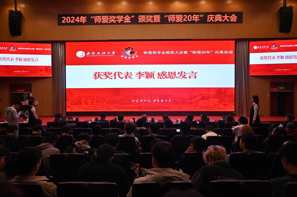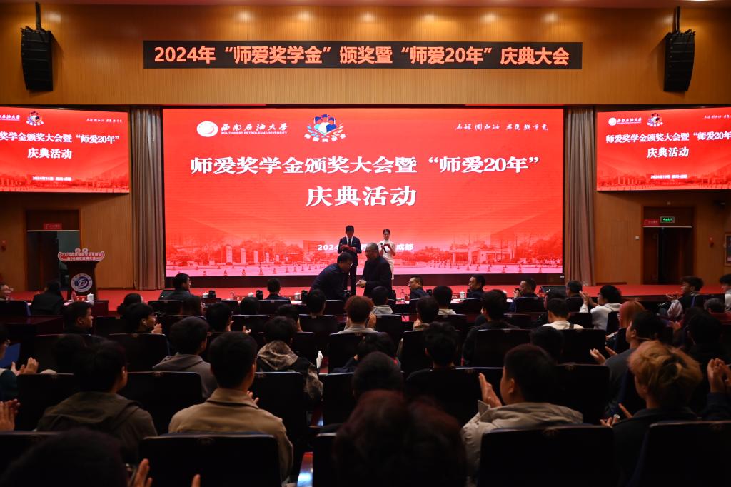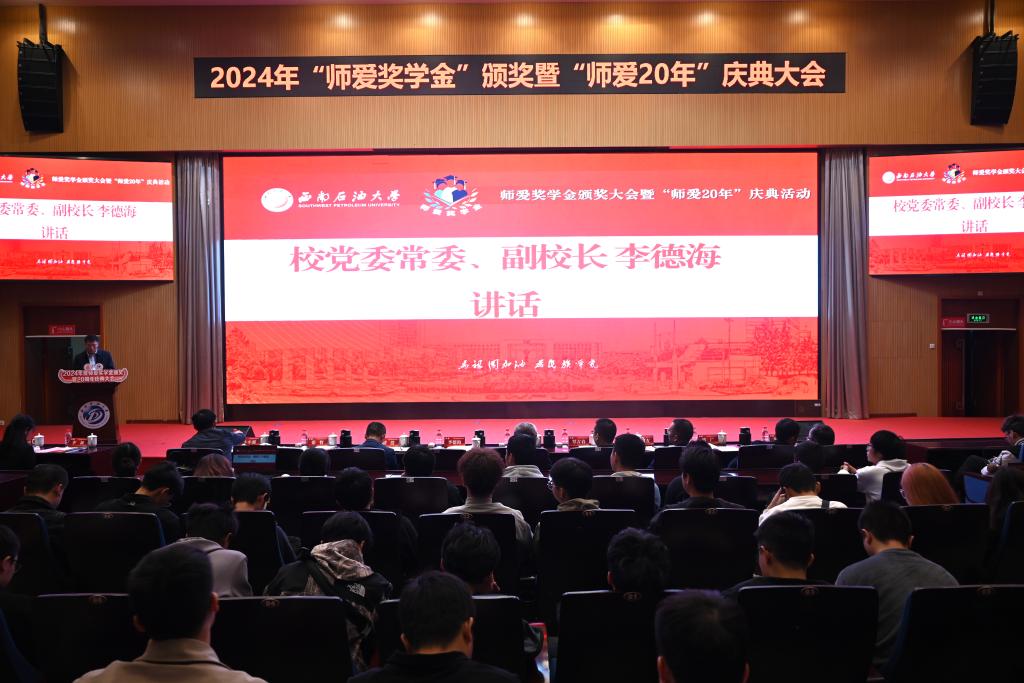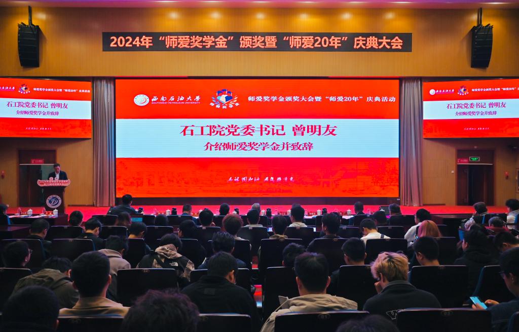10月30日,2024年“师爱奖学金”颁奖大会暨“师爱20年”庆典大会在图书馆学术报告厅隆重举行。“师爱奖学金”设立者、原西南石油学院副院长李士伦教授,校党委常委、副校长李德海,校党政办公室(校地合作办公室)主任覃吉春,校党委学生工作部(处)部长张浩,石工院在校院领导及“师爱奖学金”基金会成员代表等出席活动。