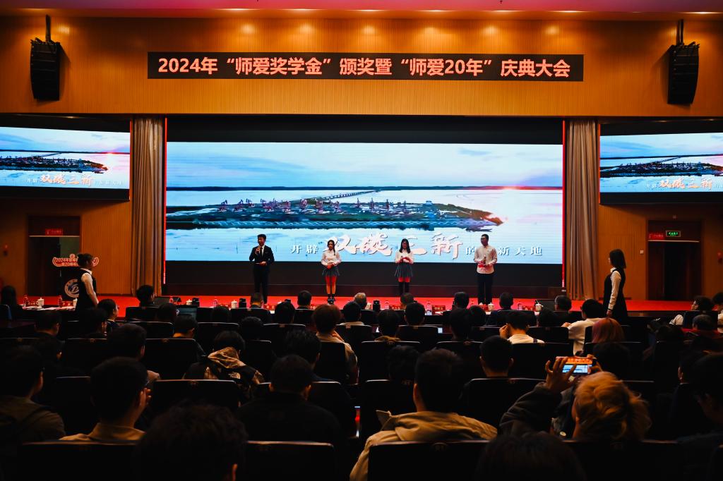 颁奖会上,嘉宾及院领导为“师爱奖学金”的获奖学生代表颁奖。
