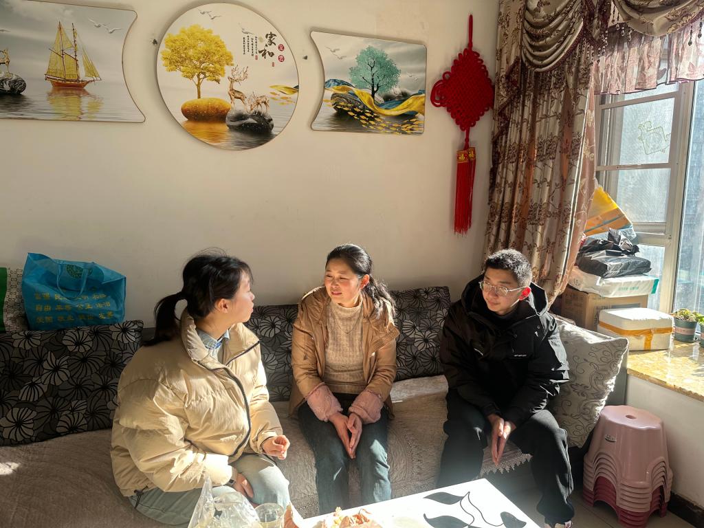 “家里的收入来源主要靠啥?”“家里现在遇到了什么困难?”在小陈同学家中,本科2024级辅导员谢诗雪详细询问学生的家庭状况,倾听学生的成长故事。了解到小陈是单亲家庭,家里有多位老人患病需赡养,仅靠低保和母亲打零工维持家用。谢诗雪向家长详细介绍国家和学校在社会资助、勤工俭学、奖学金等方面的政策,反馈了学生在校学习生活表现,还为学生家庭带去了精心准备的慰问礼物,传递学校对他们的关爱和期许。