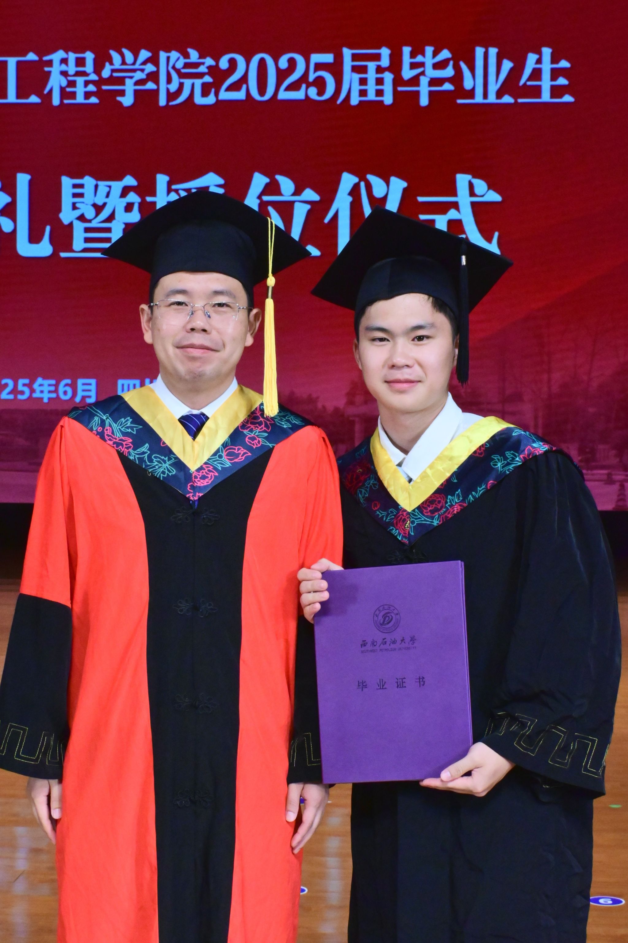 学生代表、石油工程2025届毕业生邓子睿深情回顾了四年大学生活的点滴,表达了对母校和师长的感激之情。他代表全体毕业生承诺,将不负母校培养,以扎实的专业知识和昂扬的精神面貌迎接未来的挑战。