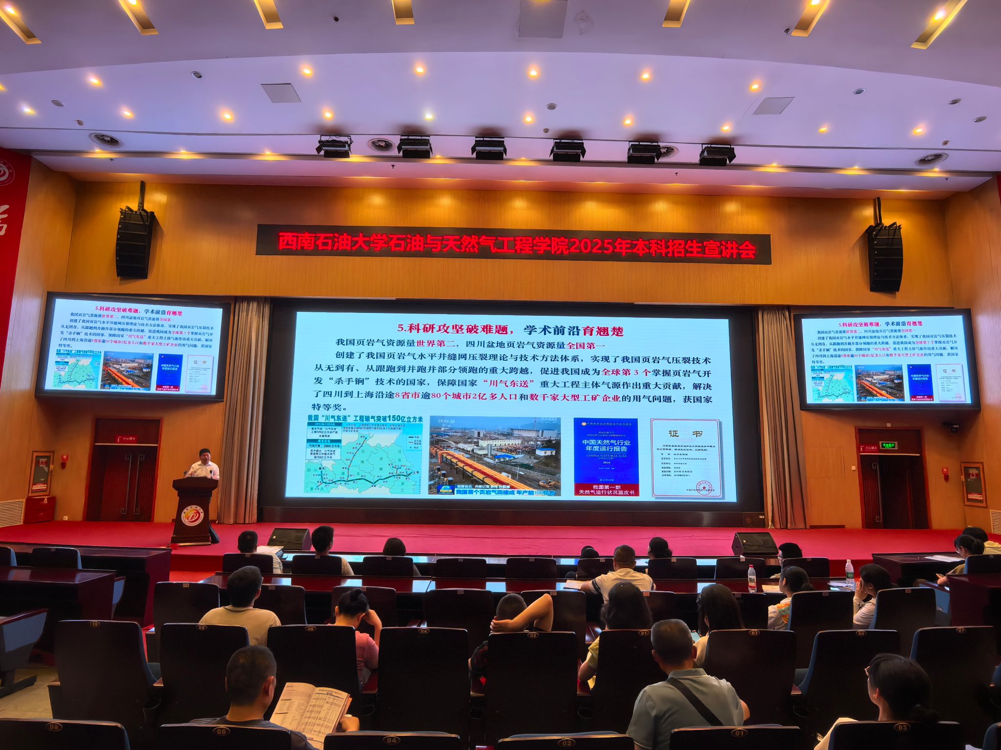 在图书馆报告厅,学院院长助理石祥超通过专题宣讲会系统展示学院办学实力,他以“能源报国奋进路、邀你共我赴一流”为主题,从学科历史、师资力量、科研平台三方面切入,重点介绍了学院在非常规油气开发、深海油气工程等领域的突破性成果。现场播放的学院招生宣传片,以真实场景展现学子在实验室、现场一线的学习实践,引发考生对能源行业的浓厚兴趣。