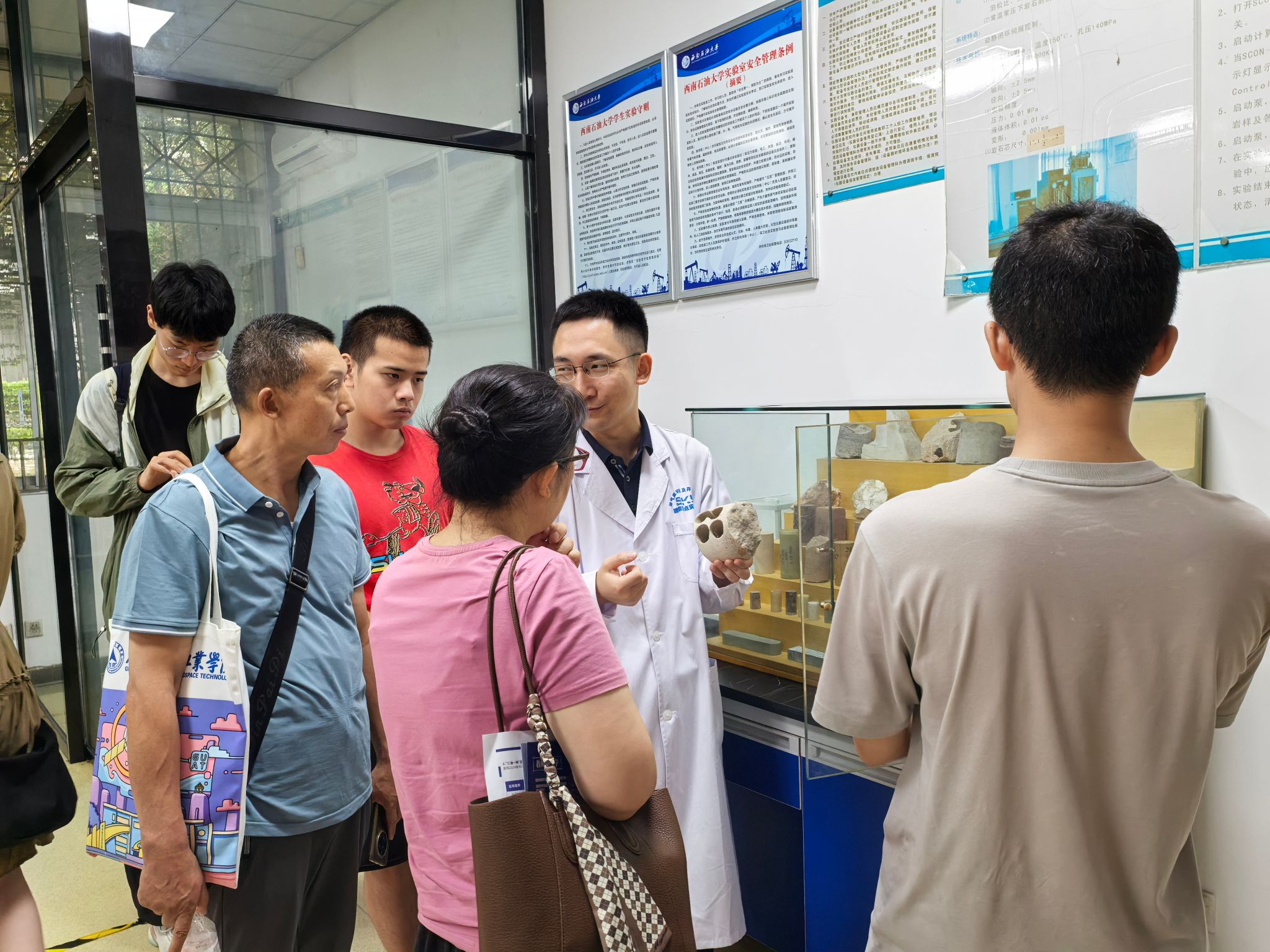 来到油气藏地质及开发工程全国重点实验室,科研人员演示纳米级孔隙三维重建技术,揭示“石头里榨油”的科技奥秘;价值不菲的场发射扫描电镜吸引考生驻足操作体验。“原来岩石内部像蜂窝一样复杂!”考生小刘在科研助理指导下调整设备参数时惊叹,“能在这里做科研,这里的本科生也太幸福了吧!”陪同参观的家长陈女士更是当场鼓励女儿:“就报这个专业!妈妈支持你当女科学家!”
