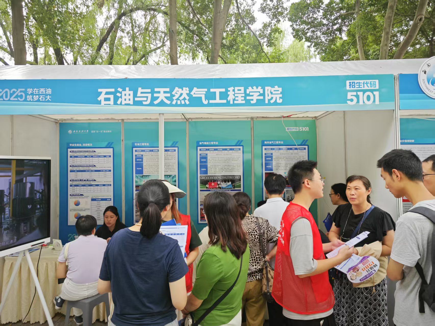 在学院咨询展台前,由专业教师、辅导员及学生志愿者组成的咨询组以“一对一”形式为考生及家长提供个性化指导。针对新高考“专业+院校”志愿填报模式,咨询组结合考生选科情况与兴趣方向,详细解读石油工程、油气储运工程等国家级一流专业的课程设置、就业前景及升学路径。现场还设置了“考研深造”“就业去向”“国际交流”等专题咨询区,满足不同考生的关注重点。