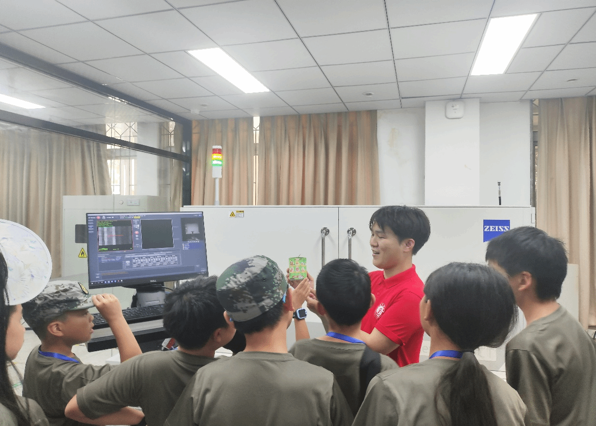 本次活动以“理论讲授—现场观摩—互动研讨”为主线。活动伊始,实践队成员刘子豪博士以“高压气球”模型类比地下储层,系统地向同学们阐释了储层增产改造的基本原理及技术路径。随后,实践队员带领同学们参观了实验室三大核心科研设备:岩石CT三维成像扫描仪、双束电镜与环境扫描电子显微镜以及离子色谱仪,并向大家介绍了这些先进设备的用途与使用方法。参观过程中,同学们就“页岩气和常规天然气有什么区别?开采过程中如何保护地下水?”等问题向实践队员提出疑问。队员何胜鹏结合实际工程案例,耐心解答了同学们的问题,并且重点介绍了以“精准压裂、绿色开发”为核心的储层保护理念。