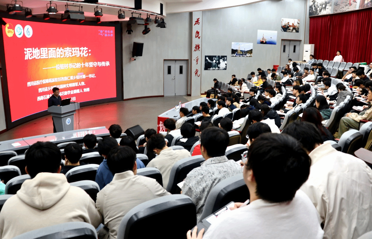 为培养学生感恩之心,激励青年学子从优秀党员的先进事迹中汲取精神力量,2025年10月23日,石工院特邀四川省医疗保障局派驻甘孜县仁果乡驻村第一书记、索玛花助学金捐赠人刘勇,在C110报告厅举行主题讲座。刘勇以《泥地里面的索玛花:一位驻村书记的十年坚守与传承》为题,深情讲述了他扎根高原民族地区十年,倾情投入教育帮扶与乡村振兴事业的感人历程。