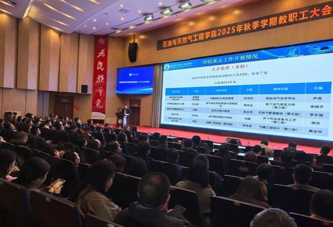 赵玉龙宣读了学院部分所(室、中心)负责人的任免通知,并部署重点工作。他强调,科研成果申报是学院发展的重要支撑,本次会议同时也是2026年基金申报专项动员会。全体教职工应高度重视、全力投入国家自然科学基金及四川省科技奖申报工作,以体系化思维推进申报过程,提升申报质量与实效。同时,要扎实推进巡察整改与国有资产清查,以钉钉子精神全力冲刺“十四五”规划收官目标。他号召全院教职工强化责任担当,凝聚发展合力,以高质量党建引领学院各项事业稳步前行,共同为石油与天然气工程学科建设注入新动能。