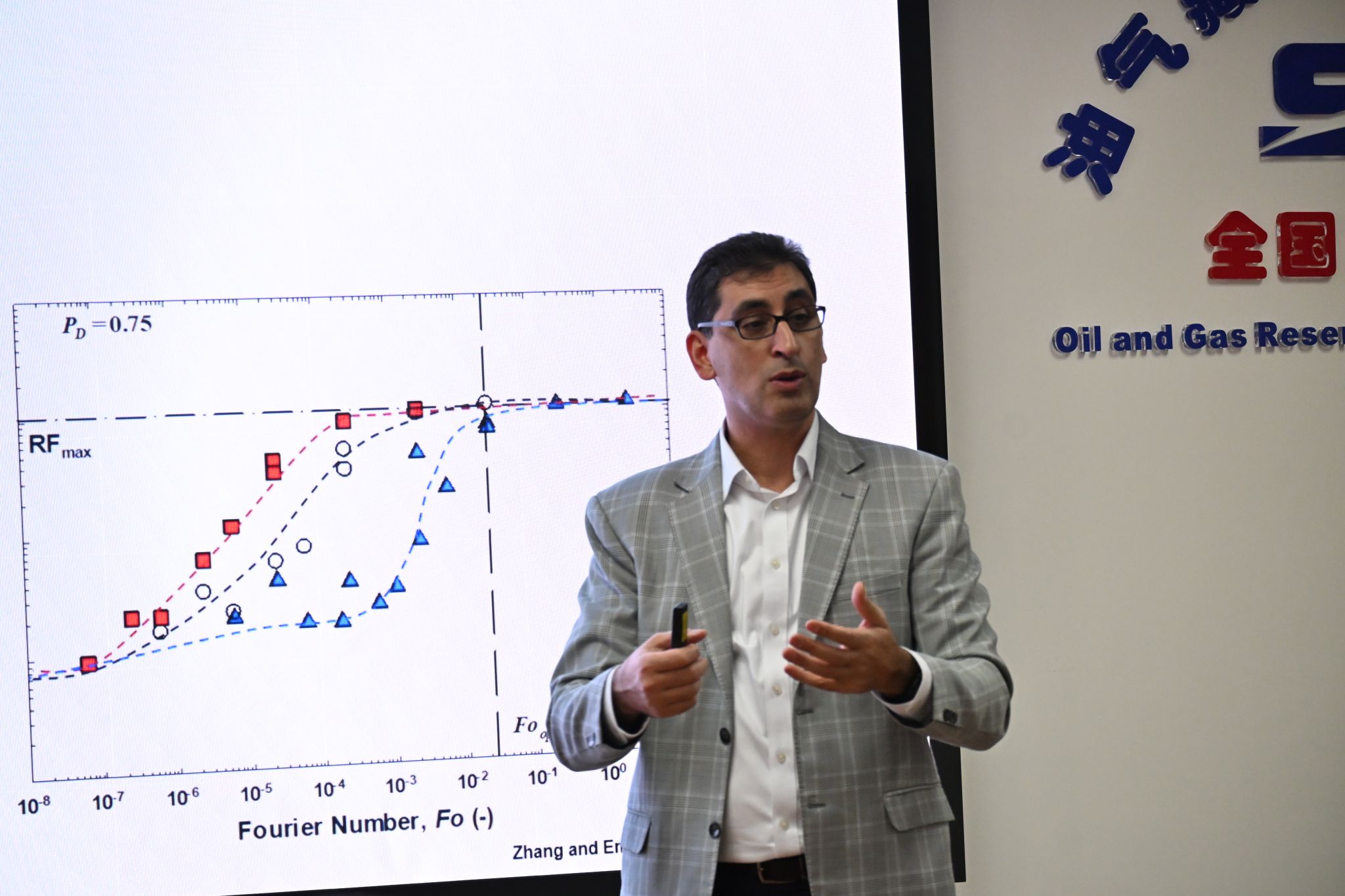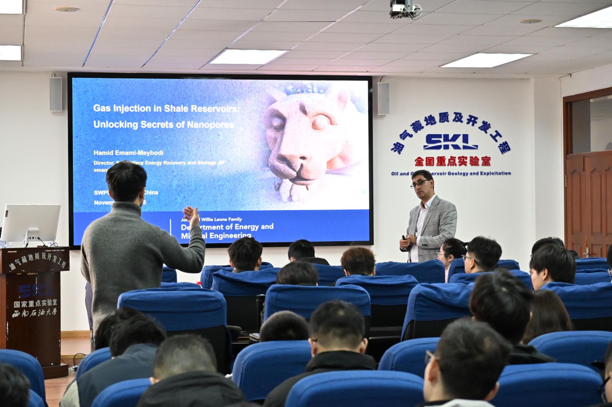 11月24日下午,美国宾州州立大学Hamid Emami-Meybodi教授应邀来访,在油气藏地质及开发工程全国重点实验室作了题为“页岩油藏气体注入:揭示纳米孔隙的秘密”的学术报告。本次活动由石工院特聘研究员何佑伟主持,兼具学术交流与研究生招生宣讲的双重目的。