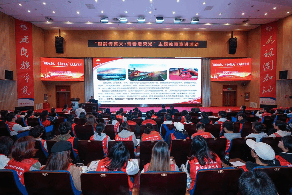 学院青马工程将“铸魂”置于首要位置,构建起涵盖理论浸润、精神传承、价值引领的立体化思想教育体系,助力学员在思想淬炼过程中厚植能源情怀。学院邀请马克思主义理论专家开设专题课程,采用原著研读、案例剖析、课后践学的授课模式,近年来累计开展专题课程40余场,覆盖学员超1200人次,以科学理论为青年树立正确思想、铸就高尚灵魂。学院深入挖掘石油特色思政资源,将“铁人精神”“川油精神”贯穿教育全过程:原四川石油管理局、西南油气田分公司党委书记张书铭结合国际能源格局与先辈事迹,深入解读石油精神的内核;四川省乡村振兴精神文明领军人物刘勇通过讲述驻村故事,引导学子融入国家发展大局。促使行业精神不仅为青年所听闻,更能深入其内心,成为青年奋进的精神动力源泉。