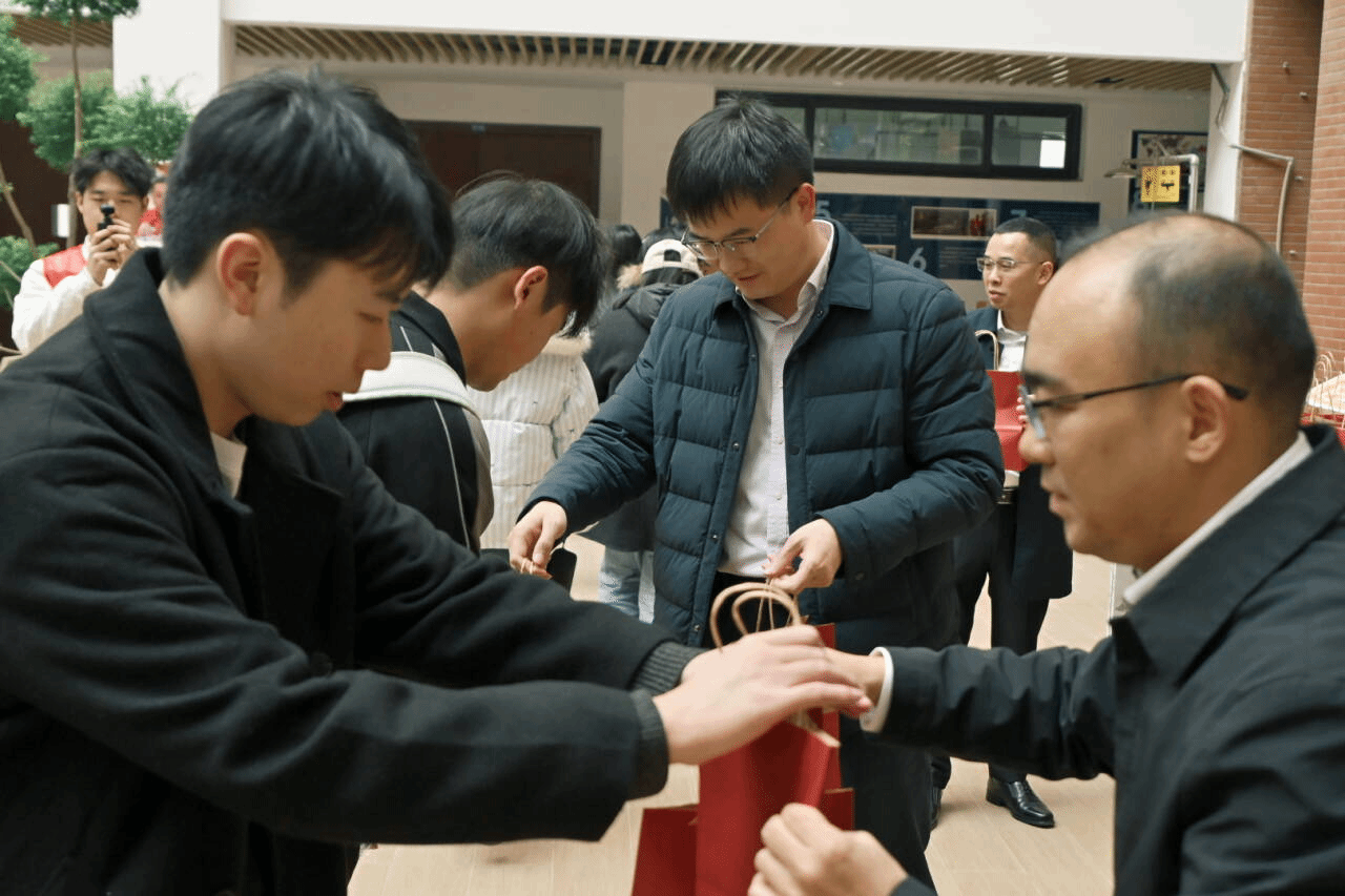 在温馨的氛围中,学院领导一同将加油包送至每位同学手中,并与他们亲切交流。一份份实用的礼物,一句句暖心的话语,让冬日的寒意尽数消散,也为考研学子注入了信心与力量。