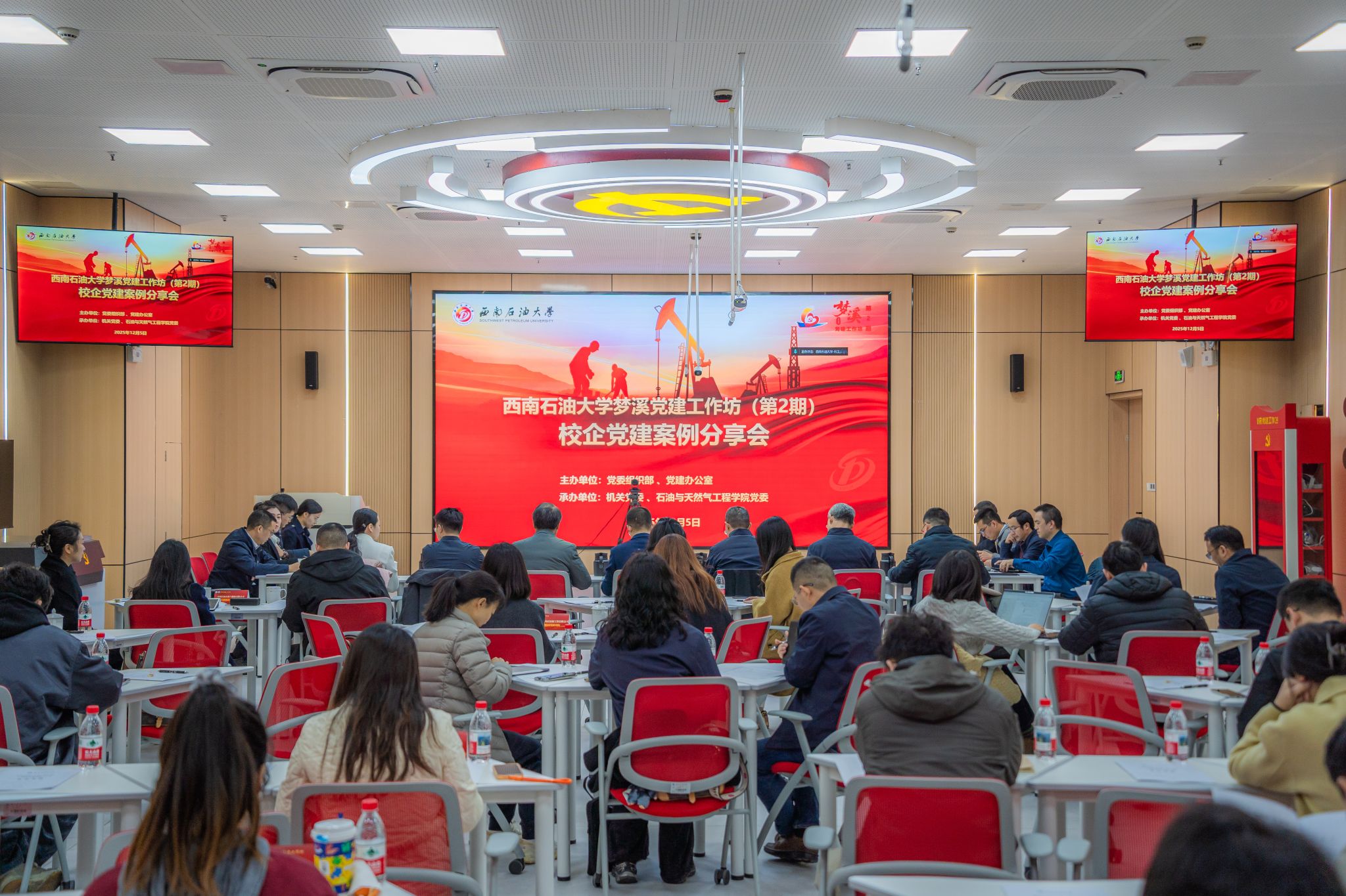2025年12月5日,西南石油大学梦溪党建工作坊(第2期)——校企党建案例分享会在学校智慧党建中心顺利举办。本次活动由学校党委组织部、党建办公室联合主办,机关党委、石油与天然气工程学院党委共同承办,以习近平新时代中国特色社会主义思想和党的二十届四中全会精神为根本遵循,紧扣“十五五”战略部署要求,聚焦“搭建校企党建共建平台、分享协同发展典型经验、推动党建与业务深度融合”核心任务,汇聚能源行业领军企业党组织负责人及校内外党建领域专家,共商高质量党建引领校企协同创新的实践路径与长效机制。