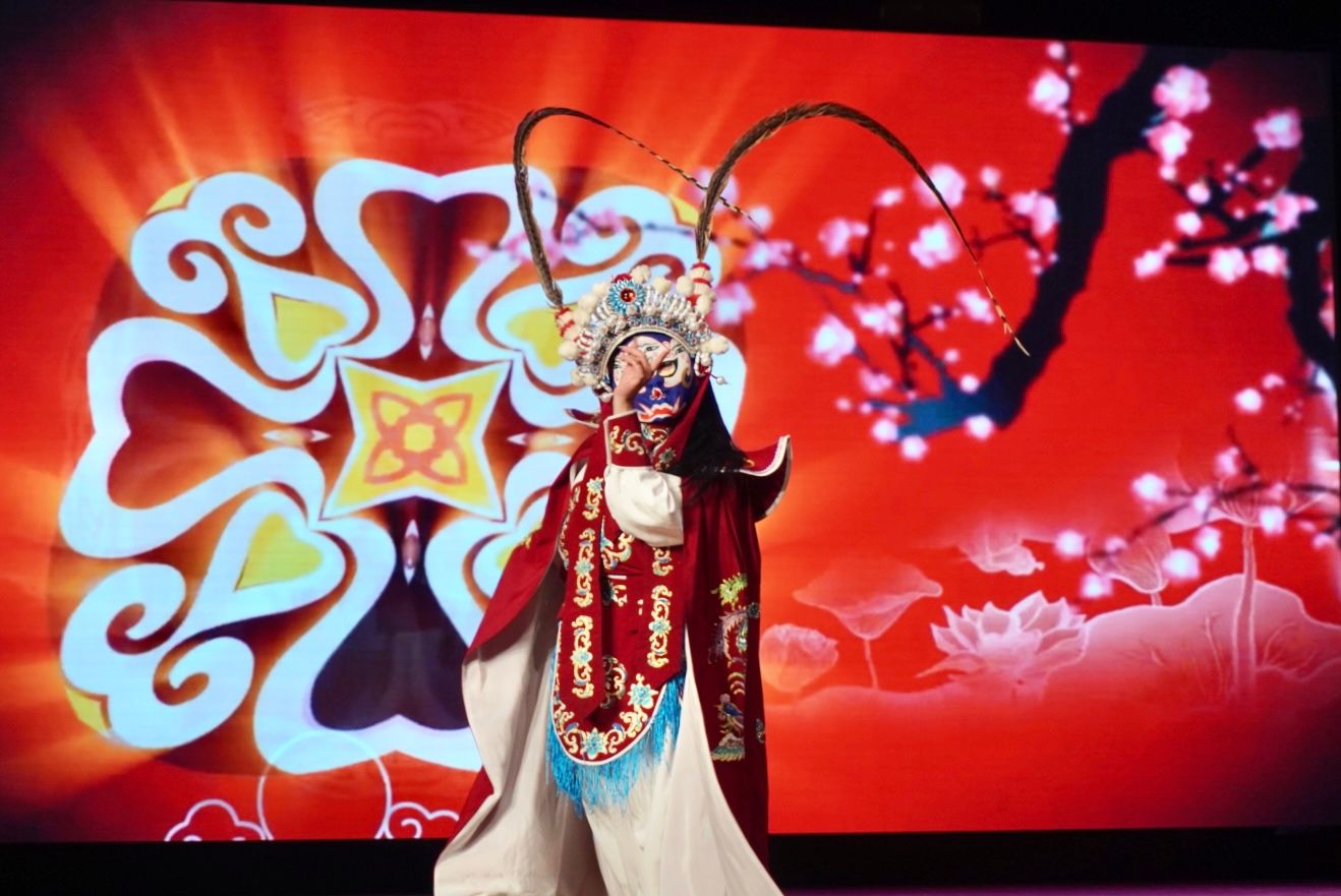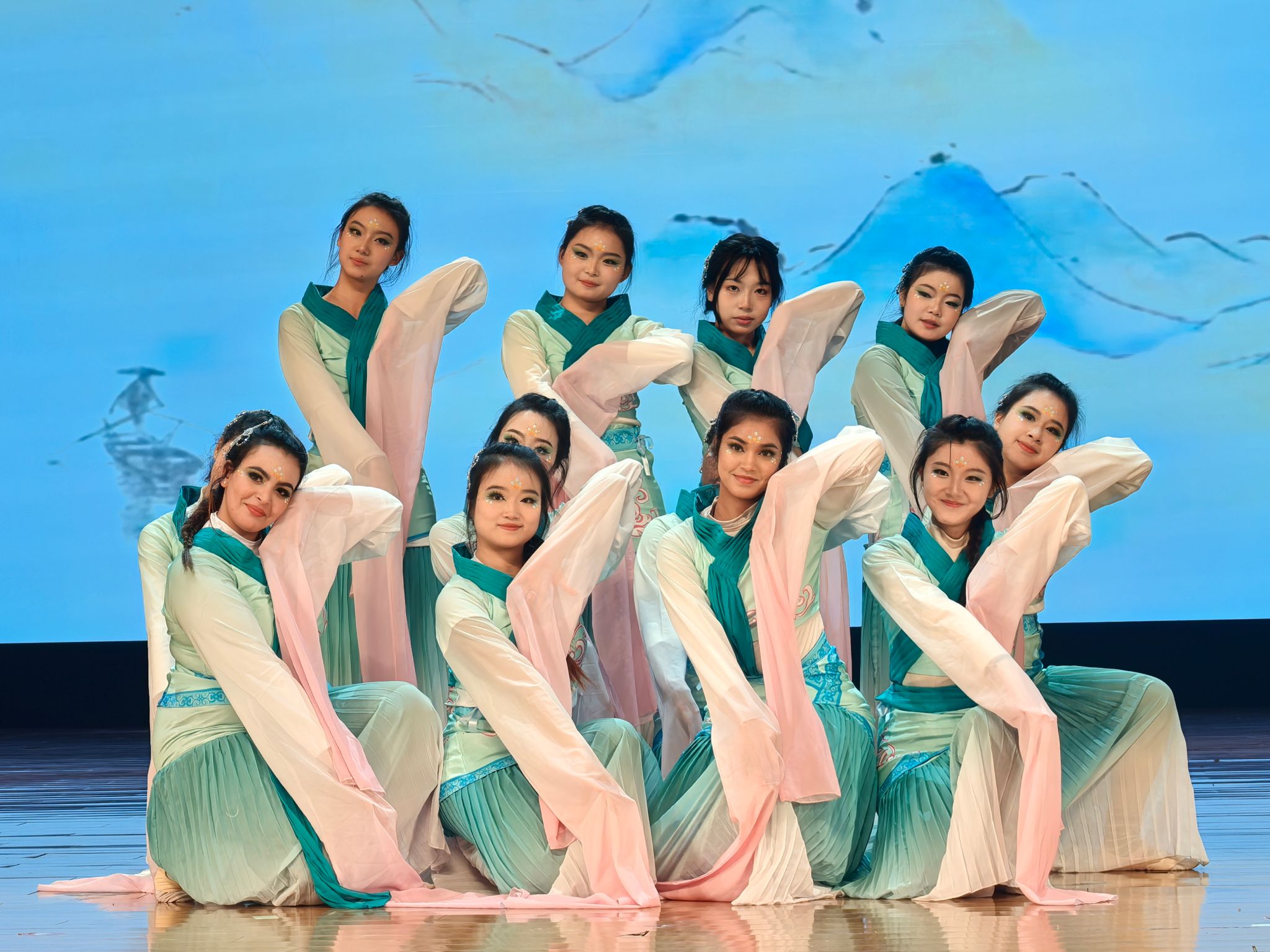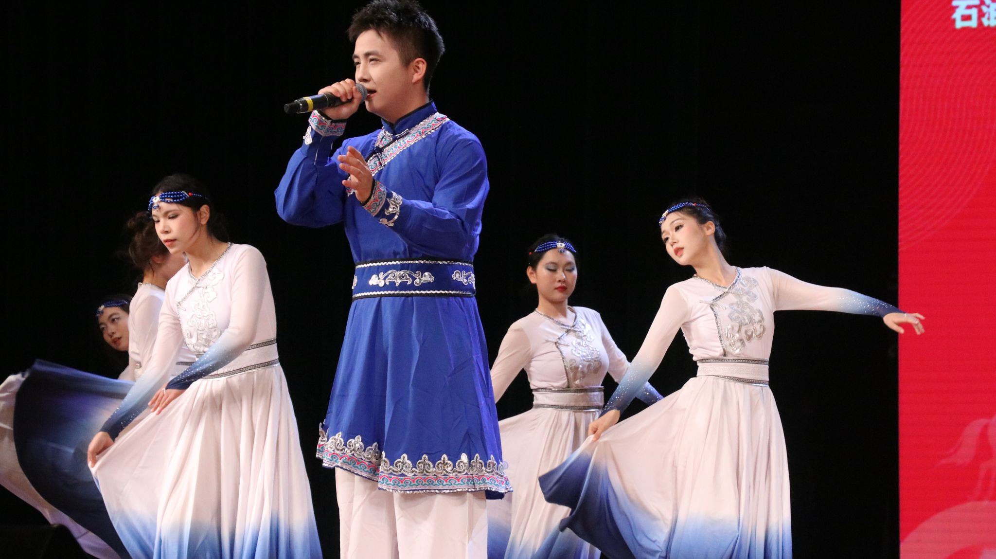 文化传承与多元融合在表演中高度体现。源自《诗经》的器乐舞蹈《小雅鹿鸣》意境悠远,水袖舒卷如流云漫舞,笛子、古筝等民乐与钢琴和鸣,中国鼓叩响古调,琵琶流转雅韵。戏曲歌舞《中国话》更是将传统与创新完美融合,川剧变脸瞬息惊艳、喷火绝技震撼全场,中外学子跨国合唱,不同语言与文化在此碰撞共鸣,展现了中华优秀传统文化的独特魅力。艺术学院2025届毕业生康家豪等人主唱的歌舞《敕勒歌》则以醇厚歌声勾勒出塞外草原的辽阔意境,蒙古舞团队的舒展舞姿还原出马背民族的豪迈洒脱,让观众沉浸式领略了传统民歌与民族舞蹈的独特韵味。
