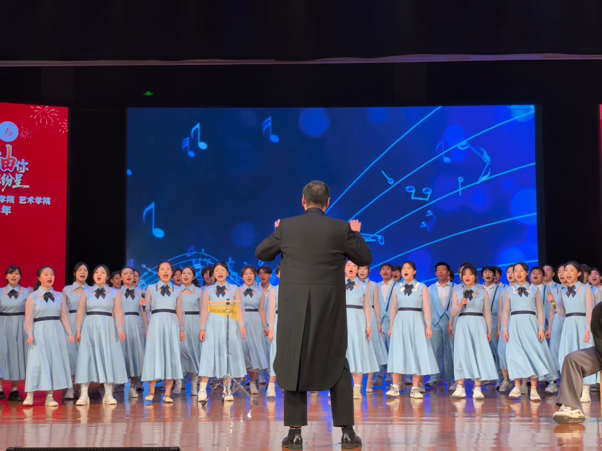 在紧张刺激的抽奖环节后,由大学生艺术中心合唱团与艺术院学子们共同演唱的《Try Everything》《我的未来不是梦》将气氛推向高潮,激扬的旋律与深情的歌声带动全场师生自发跟唱。