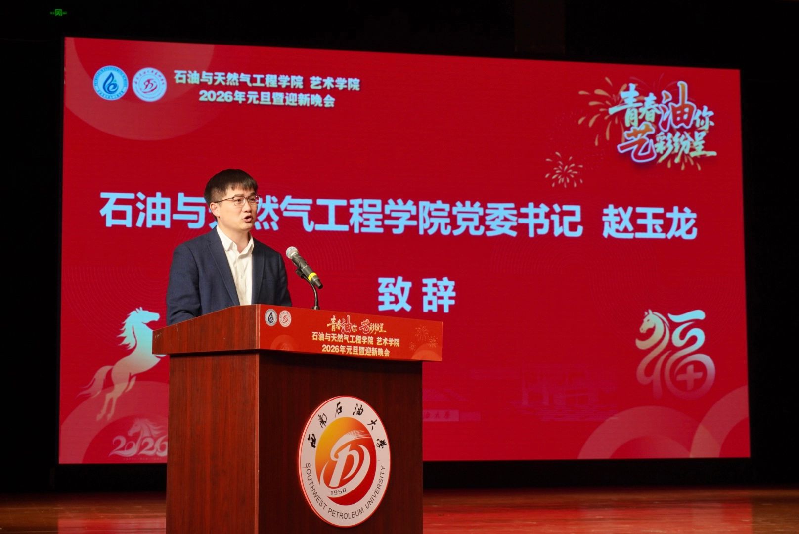 赵玉龙作致辞,他回顾了2025年在师生的共同努力下,两院各项事业发展取得的令人振奋的成绩,展望2026年,两院将紧密围绕国家能源战略与文化传播需求,紧盯学校发展目标,持续深化综合改革,加强一流学科和一流美育建设,完善人才培养体系,努力为同学们成长成才创造更优条件、搭建更广舞台。