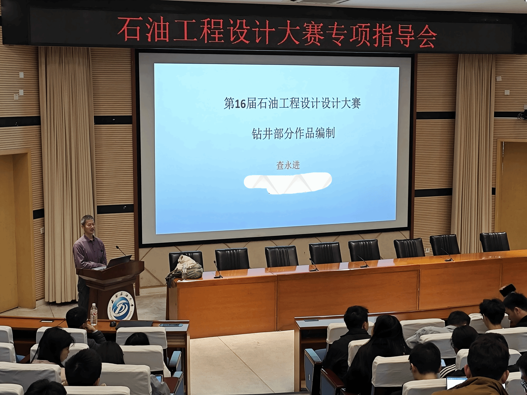 3月25日下午,学院在思学楼A114举办专题指导会,特邀中国石油集团工程技术研究院有限公司首席技术专家、教授级高级工程师查永进担任主讲嘉宾。查永进教授结合自身多年赛事评审经验与行业实践积累,围绕赛题技术要求、钻井标准体系、气田开发方案编制规范、钻井工程设计核心准则等关键内容展开深度解读,同时对参赛作品的完整性、规范性与原创性提出明确要求。互动交流环节,同学们围绕“规范执行与创新突破的平衡路径”“高压气井井身结构设计关键控制点”等备赛难点踊跃提问,查永进教授逐一细致回应、深入剖析,现场交流氛围热烈。