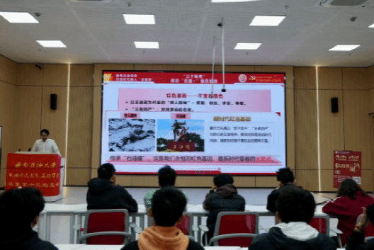 支部党员张奥林、黄可欣、邓茜文也依次登台,分别围绕《新时代石油青年的红色答卷》《激活新质生产力,青春油我当先锋》《筑牢文化自信,彰显中华魅力》等主题展开交流。他们结合成长轨迹、专业探索与社会实践娓娓道来,情感真挚、案例鲜活,交流内容朴实真切,具有较强感染力与引导性。