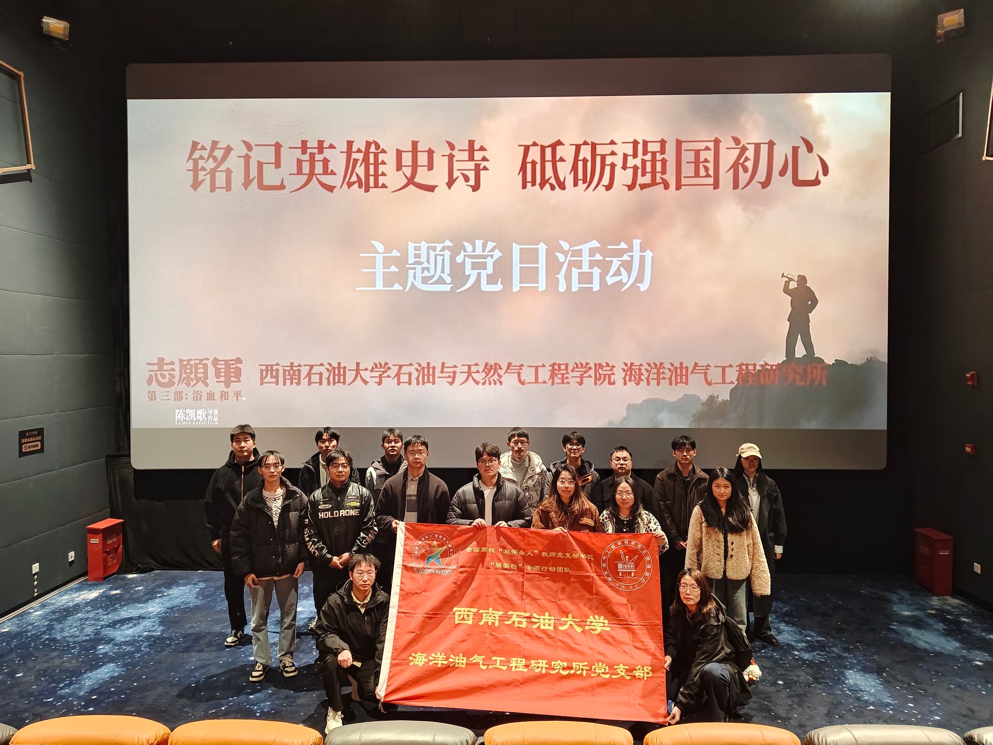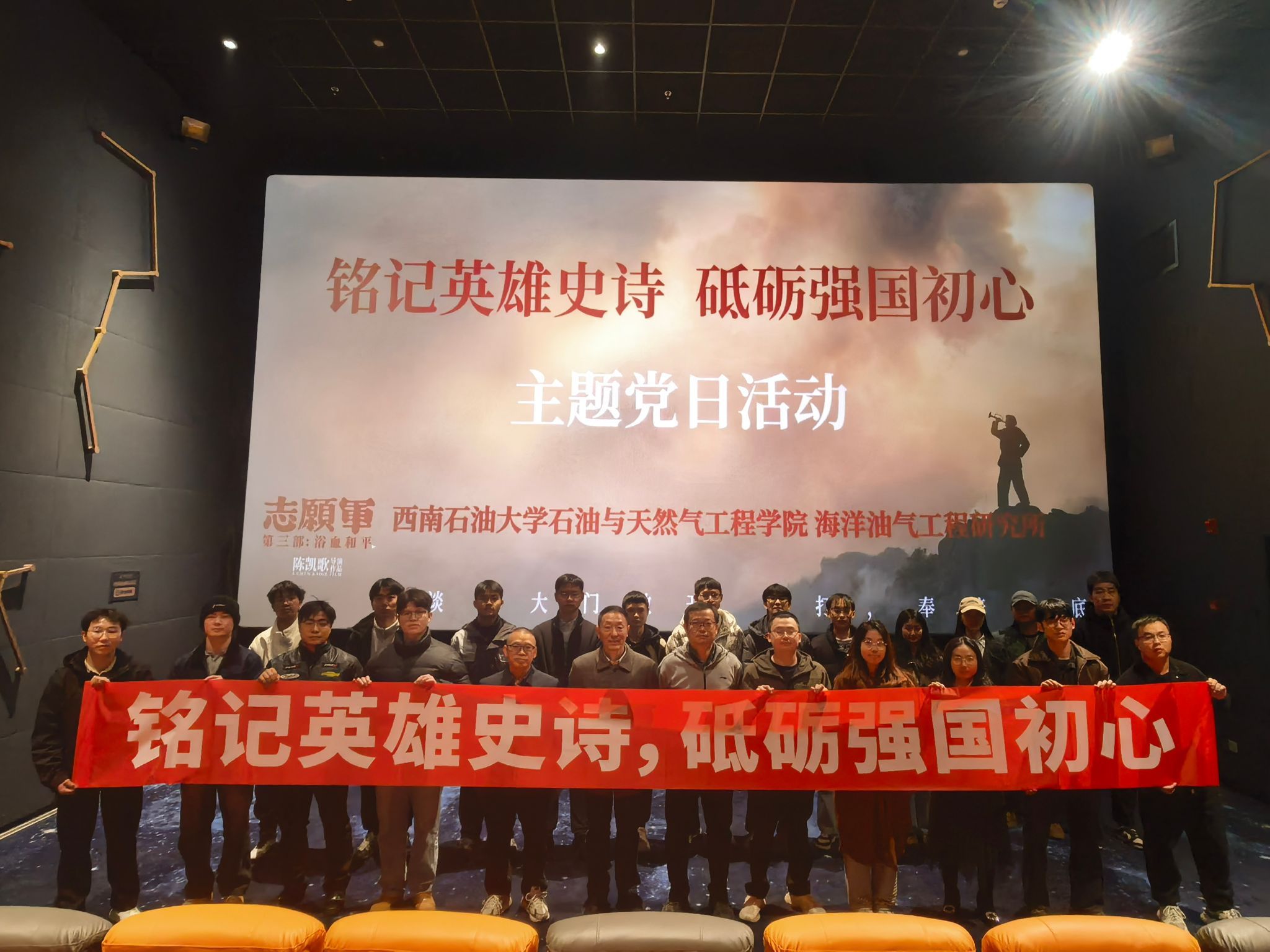 为深化爱国主义教育,传承红色基因,2025年11月20日16:30,海洋油气工程研究所党支部组织全体党员开展了以“铭记英雄史诗,砥砺强国初心”为主题的党日活动,集体观看了爱国主义史诗电影《志愿军:浴血和平》。旨在通过沉浸式的观影体验,重温峥嵘岁月,激发奋进力量。