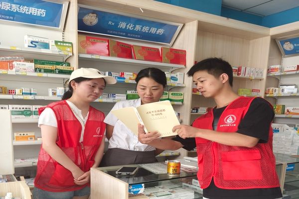 7月9日,实践团队与永安大药房负责人李老板围绕药店经营展开交流。队员刘坤结合药品集中采购和医保改革政策,向李老板讲解了“以人民为中心”的发展思想和“健康中国战略”的深远意义。次日上午,实践团队在碧溪场社区活动室组织了读书分享会,与药店工作人员、保安及社区居民共读书籍选段。团队成员们结合“法治社会建设”和“高质量发展”等关键词,辅以药店依法经营、保安依法维护秩序等生动案例,将生涩的理论与群众日常生活相联系,让理论宣讲更加接地气、入人心。