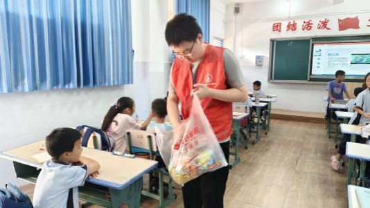 图 2 志愿者为孩子们分发糖果