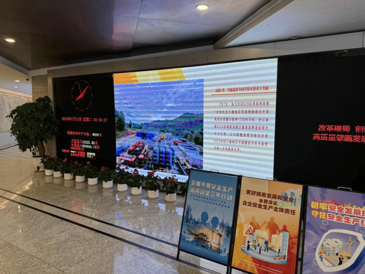 作为我国第二口万米科探井,深地川科1井设计井深10520米,需穿越25套地层、10个无规则压力系统,面临138兆帕超高压与224℃高温的极限挑战,被业内专家称为“入地难度堪比登月”的工程,承载着破解四川盆地超深层油气成藏规律、提升我国深地勘探技术、保障国家能源安全的战略使命。实践队首站来到川庆钻探公司川西钻探公司,队员们在公司大楼前举起队旗合影,随后走进企业展厅,在“川西钻探公司打造提质增效‘精进版’”主题展板前围站聆听讲解,了解到企业在超深井钻井效率、智能生产系统等领域的技术突破;当步入“工程作业智能支持中心”,看到标识墙上“川西钻探公司工程作业智能支持中心”的字样与企业标志,大家直观感受到“科技赋能深地勘探”的强劲脉搏。