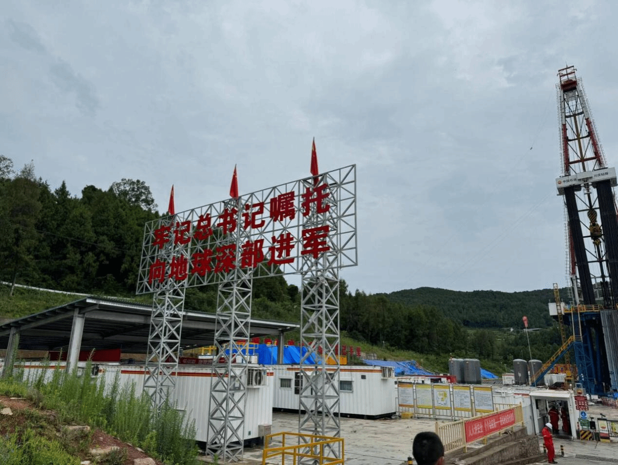 井场入口处,“牢记总书记嘱托 向地球深部进军”的拱门在红旗映衬下格外庄严。