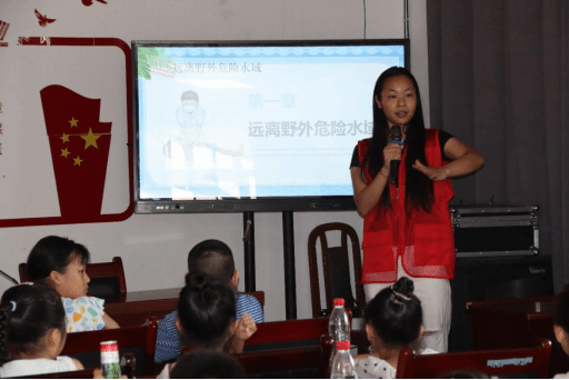 紧接着的防溺水安全教育课,更是牢牢抓住了孩子们的注意力。队员们结合乡村常见的河流、池塘场景,用真实案例警示野外水域的危险,又手把手教孩子们 “仰卧漂浮”“大声呼救” 等自救方法,最后带领大家齐声朗读 “不私自下水游泳、不擅自与他人结伴游泳” 等防溺 “六不准” 口诀。“以前我还想和小伙伴去河边摸鱼,现在知道太危险了!” 小姑娘小雨听完后主动举手,认真地说:“我再也不会一个人去河边玩,还要叫弟弟也远离危险水域!”