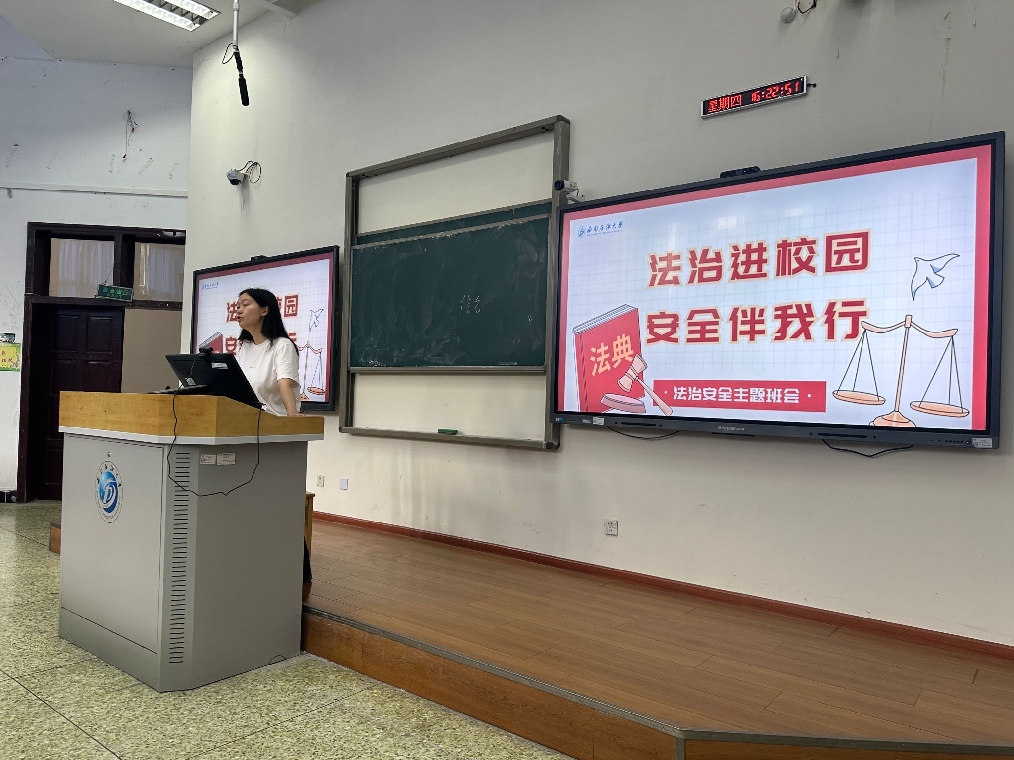 为进一步强化学生法治观念,规范日常行为准则,助力新生扣好大学生涯“第一粒扣子”,2025年9月4日,石工院2023级油气储运工程专业于思学楼B110教室隆重召开“法纪教育专题年级大会”。本次大会由辅导员邓老师主讲,全体新生共同参与,通过制度解读、案例警示与互动实践相结合的形式,为学子们上了一堂生动深刻的法治必修课。