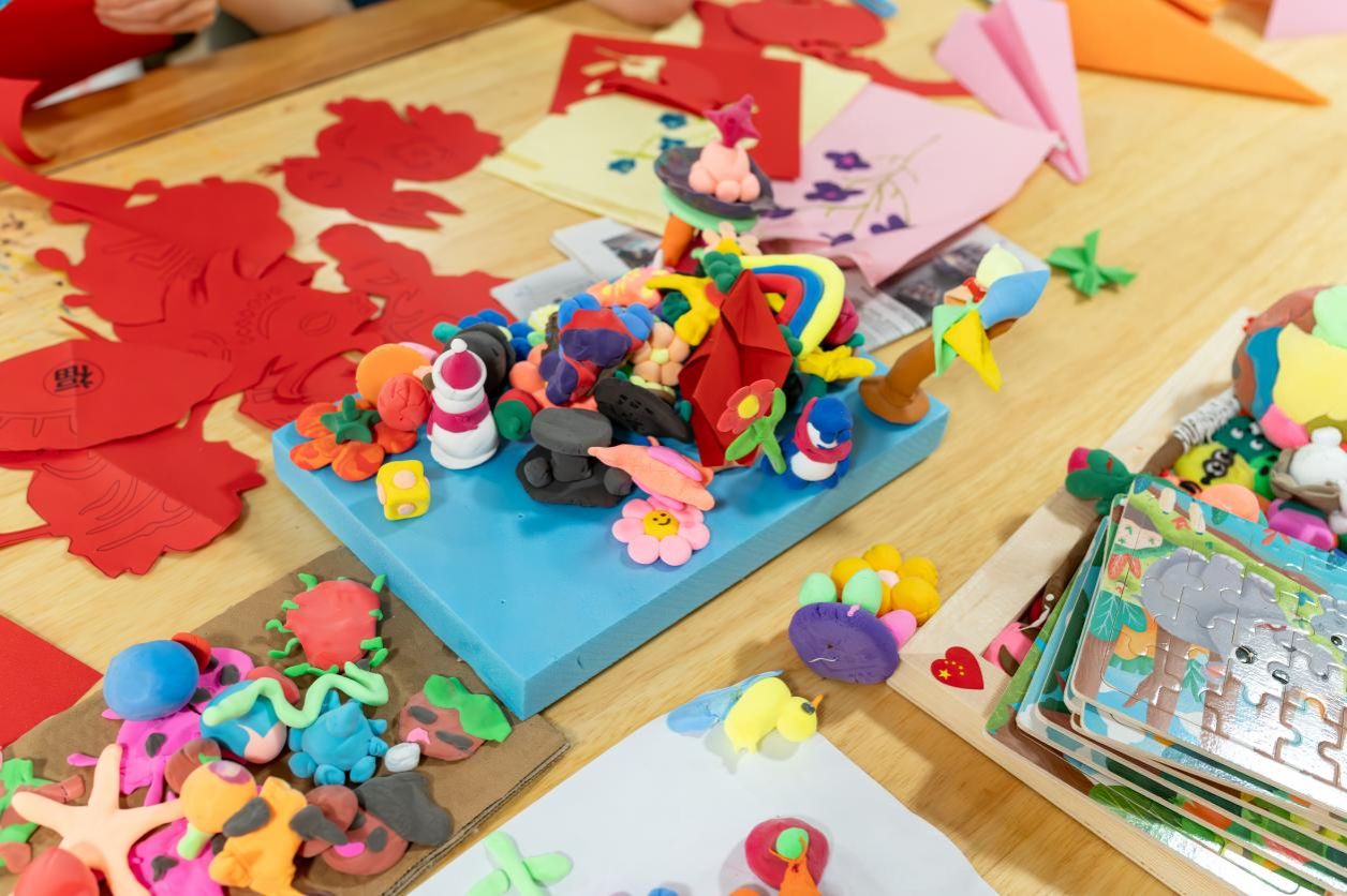 活动中,最动人的莫过于孩子们之间的分享。一个小姑娘把捏好的“小蛋糕”分给旁边的小伙伴,说:“这个给你,我们一起当小厨师。”队员们趁机教他们互相帮忙:你帮我递红色粘土,我帮你把作品摆稳当,小小的工作台成了培养友爱与合作的小天地。