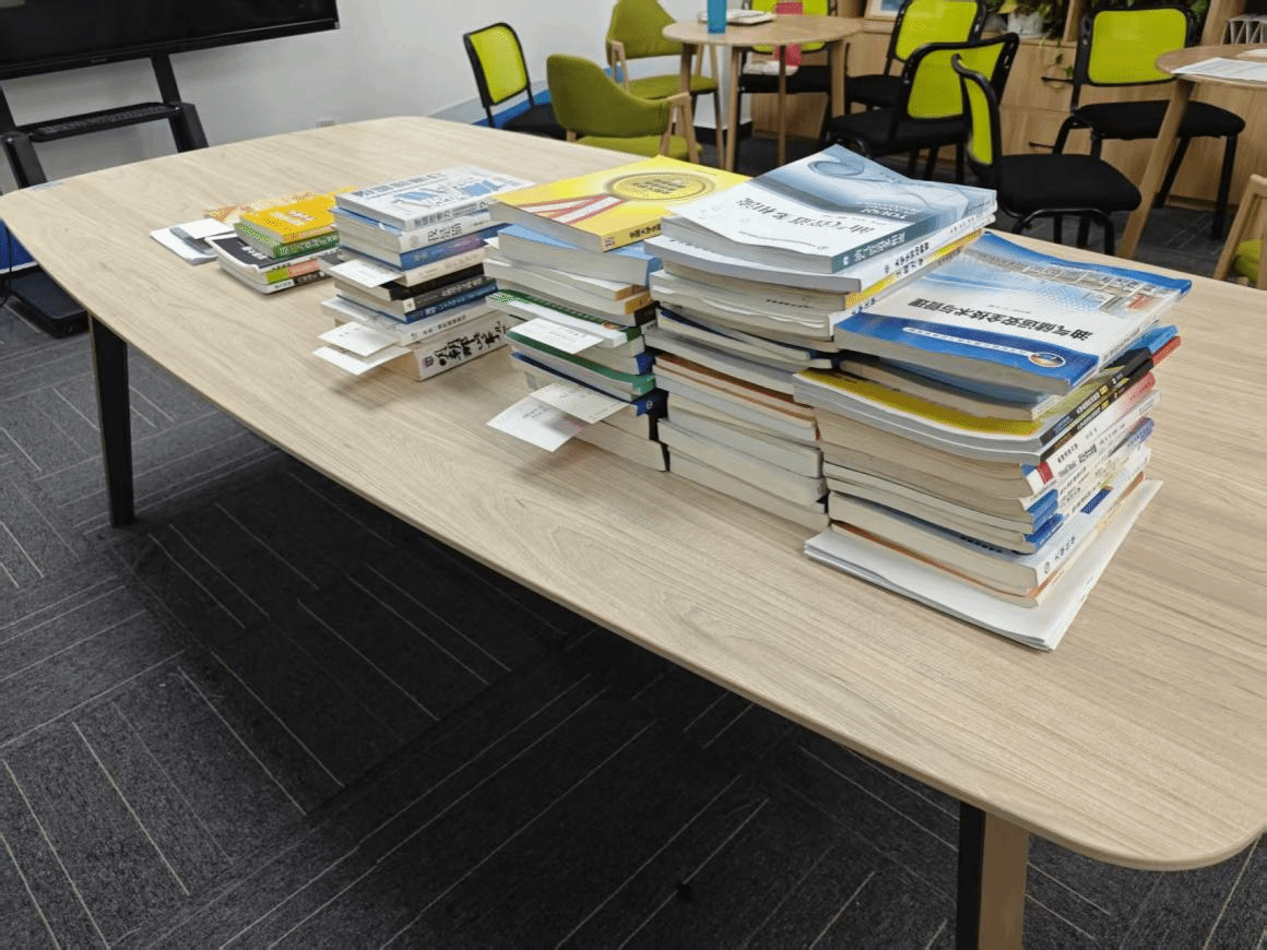 活动期间,各年级同学积极响应,捐赠热情高涨。大家纷纷整理出家中及宿舍的闲置书籍,从标注着翔实笔记的专业教材、条理清晰的考研备考资料,到承载着人文思考的文学名著、富含生活智慧的经典读物,各类书籍源源不断汇聚至活动现场,很快堆叠成一座座“知识小山”,每一本都承载着捐赠者的真心诚意。