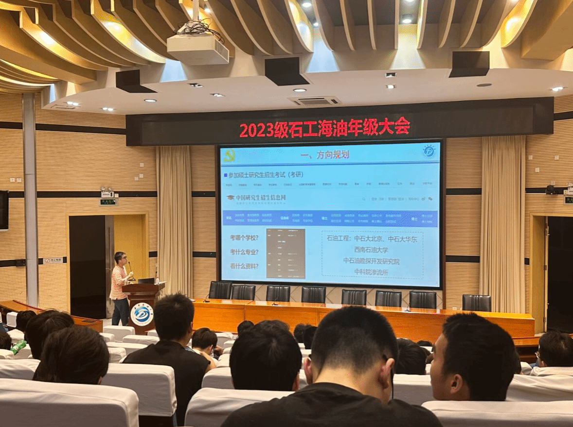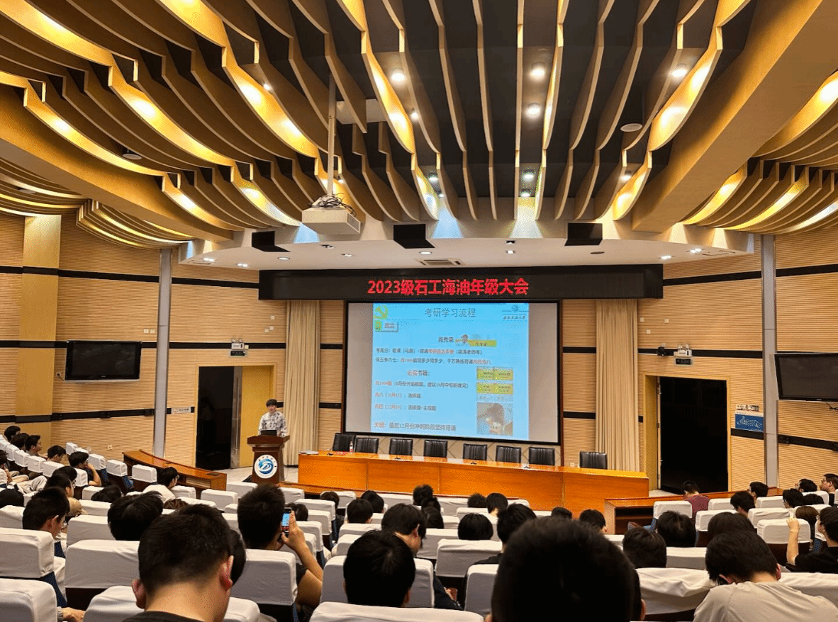 9月29日,石油与天然气工程学院2023级石工海油专业于思学楼A114召开年级大会,辅导员刘丹丹主持,全体学生参会,研一铁人学生党支部党员郑多闻、刘茂毅学长受邀分享,开展党、班、团共建分享活动。