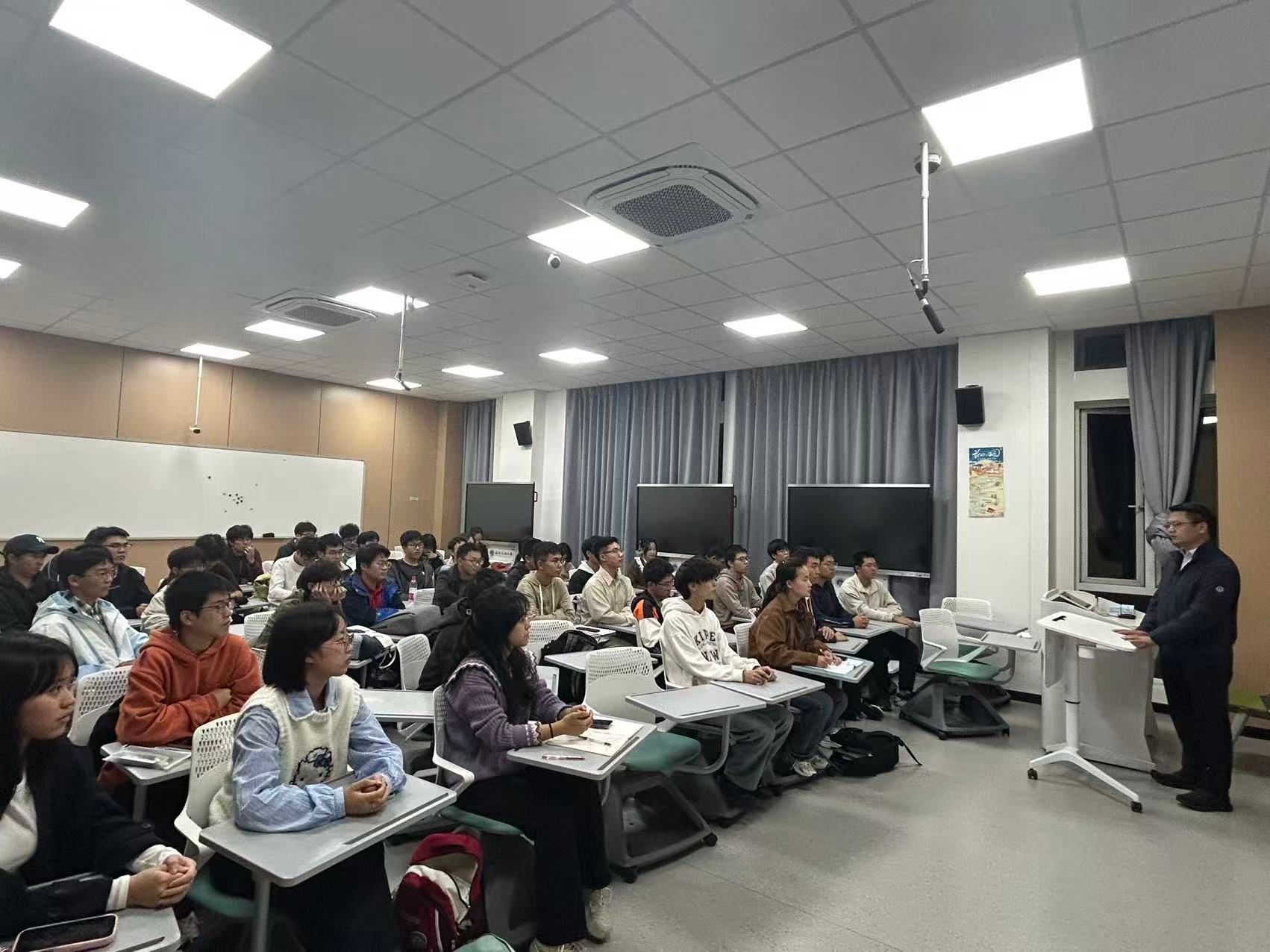 在现场,陈好同学提出“如何与他人拉开差距”。陶祖文回答:“先把学习抓好,有余力再参与学生工作和竞赛。”辅导员上官自然补充说:“有紧迫感是好现象,但真正要比的,是昨天的自己,一天或一段时间有收获就很好了。”