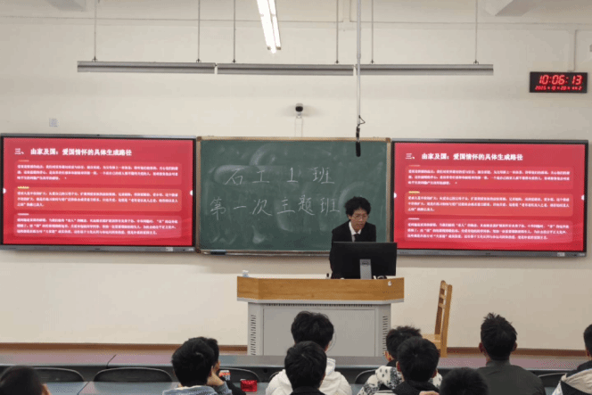 一场深刻的思想洗礼,一次成功的精神动员。班会如同一座桥梁,连接了历史与现实,让同学们对爱国主义的理解不再停留在口号,而是化为对历史脉络的清晰认知和对时代要求的深刻把握。热烈的讨论与真诚的分享,不仅是思想的交锋,更是能力的淬炼,让大家学会了如何将“家国情怀”这一宏大叙事,与个人的专业选择和未来发展紧密相连。本次班会为2025级石工1班全体同学的大学生涯注入了强大的精神动能。它激励着这群未来的石油人,将个人理想融入时代洪流,以专业所学铸就报国之能,在为祖国能源事业奋斗的征程上,书写无愧于青春的壮丽篇章。