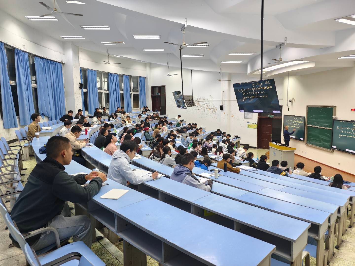 石油与天然气工程学院考研数学冲刺班第三讲于11月3日晚在思学楼B110举行,由理学院谢祥俊教授主讲,120余名考研学生参加。