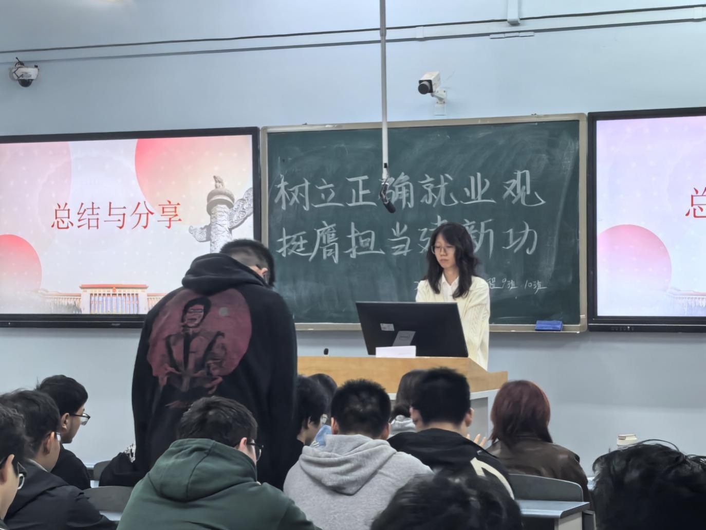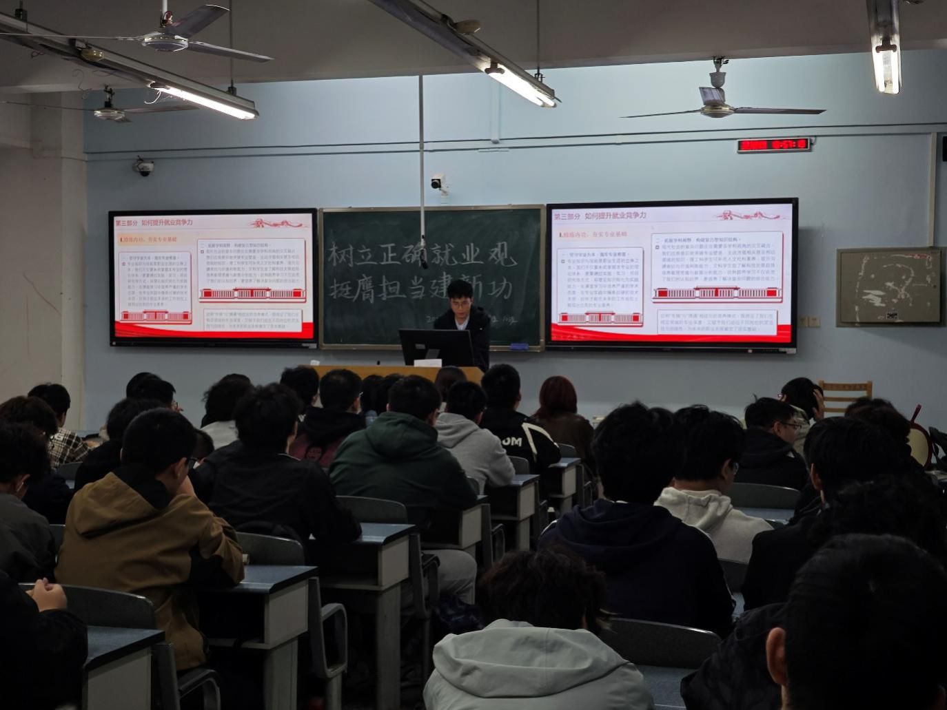 活动开始,团支书郝若冰围绕时代召唤与青年责任进行了深刻阐述。她结合国家发展战略与当前社会人才需求,分析了新时代为广大青年提供的广阔舞台和历史机遇,强调生逢其时,重任在肩,当代青年必须深刻认识到自身所肩负的时代责任,自觉将职业选择与国家前途命运紧密相连,响应号召,到党和人民最需要的地方去挥洒青春汗水。