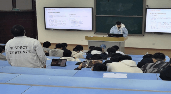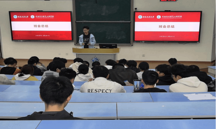 紧接着,6班班长唐李童根据本次班会主题进行学风建设相关问题的阐述,强调新时代青年当以青春献礼祖国,加强学风建设,强国有我!最后5班班长黄麒升和6班班长唐李童分别对此次班会作出总结。