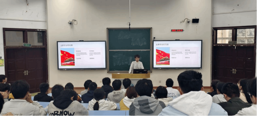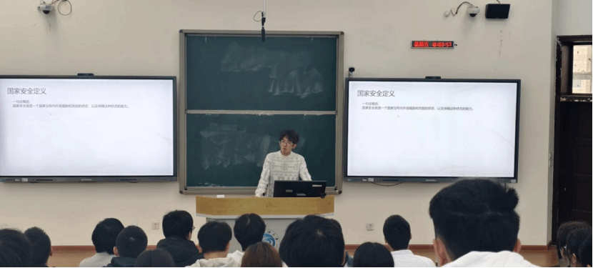 活动的核心环节为PPT专题讲解,由六班团支书杨竣杰负责主讲。讲解内容层层递进,内涵丰富。主讲人首先从理论高度出发,对“国家安全”的概念进行了系统阐释,引导学生理解其时代内涵与战略意义。