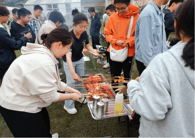 活动现场,围绕在烧烤炉与篝火旁的温暖相聚取代了刻板的流程与形式。当炊烟袅袅升起,食物的香气弥漫在秋日的空气中,最初稍显拘谨的氛围很快就被欢声笑语所取代。同学们或并肩协作准备食材,或围坐在一起分享家乡见闻、兴趣爱好与入学以来的种种趣事。一位正在细心翻烤食材的同学笑着说:"没想到我们班有这么多'卧虎藏龙'的同学,听他们讲述自己家乡的独特风俗和过往的有趣经历,感觉特别亲切,一下子就拉近了彼此的距离。"