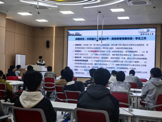 最后,肖雨桐向全体与会同学表达了殷切期望与美好祝愿。她希望同学们能以此次分享会为新的起点,认真消化吸收宝贵经验,合理规划大学生涯,脚踏实地,锐意进取,在追求卓越的道路上不断前行。她深情寄语:“学院和‘一站式’学生社区永远是大家最坚实的后盾,期待未来能有更多石工学子通过自身努力,成功抵达理想的彼岸,顺利保研,续写辉煌!”