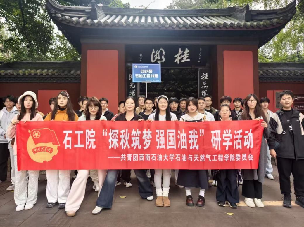2025年11月8日,石油工程2024级14班的同学们怀着对人文历史的向往与班级相聚的期待,开启了一场融人文研学与班级共建于一体的特色活动。在桂湖的千年古韵与小院的人间烟火中,大家共赏文脉风华,同叙同窗情谊,书写了青春聚力的生动篇章。