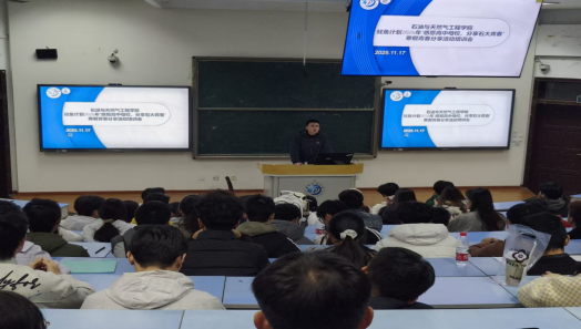 为更好地开展鲑鱼计划2026年“感恩高中母校,分享石大青春”寒假青春分享活动,11月17日石工院双创俱乐部于思学楼B210协助举办学院院级培训,学院百余支队伍代表参加,负责老师费冬做相关培训,邀请2025年鲑鱼计划活动获校级团队一等奖的队伍现场分享。