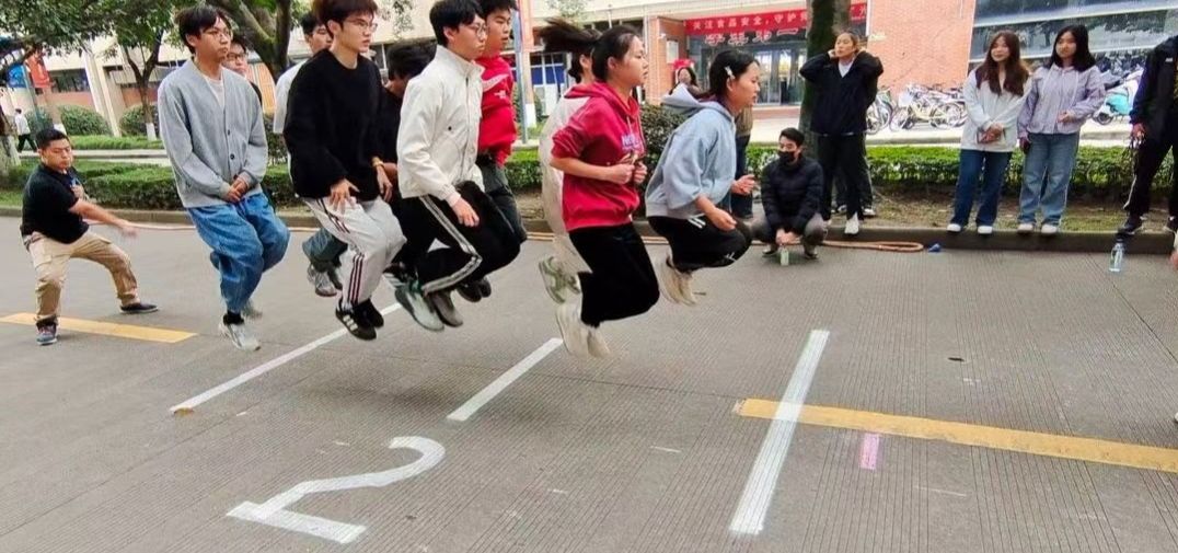 活动现场气氛热烈,设置了单人速度跳、双人协同跳、集体长绳接力等多个项目。同学们精神饱满,积极参与,展现了良好的体育风貌和团队精神。跳绳在空中划出一道道优美的弧线,参赛选手们步伐轻盈、配合默契,现场掌声、欢呼声不断,洋溢着青春的气息与运动的活力。