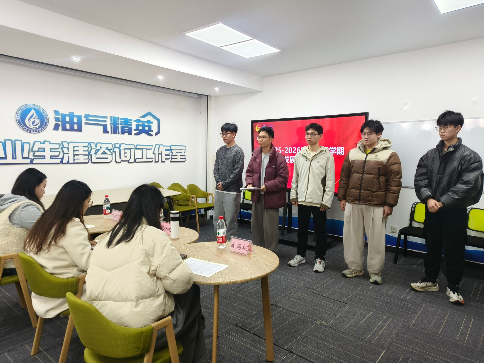 为了严格选拔优秀团员,促进团员全面高质量发展,石工院于2025年11月27日下午14:30在明辨楼B605开展入团积极分子面试。本次参与选拔的学生共40位,石工院团委书记兰冰芯老师、辅导员肖雨桐老师、辅导员谢诗雪老师担任本次面试的面试官,对面试的同学进行了严格考察,提出了指导意见。