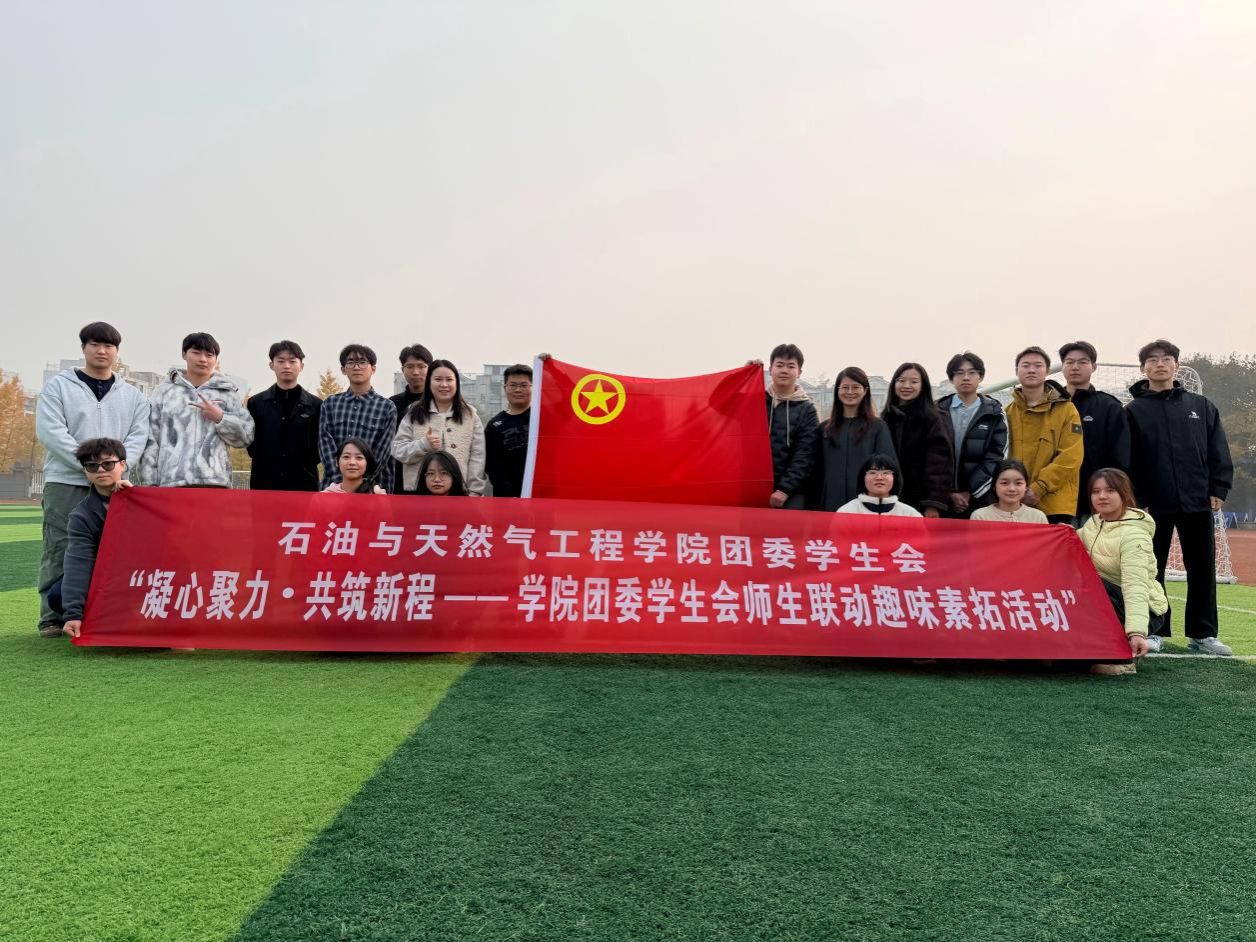 为释放学生干部工作压力,提升团队协作能力,搭建师生沟通桥梁,11月29日,石工院团委学生会在二期足球场成功举办“凝心聚力・共筑新程”师生联动趣味素拓活动。指导老师与学生会负责人们齐聚一堂,在欢声笑语中凝聚青春力量。