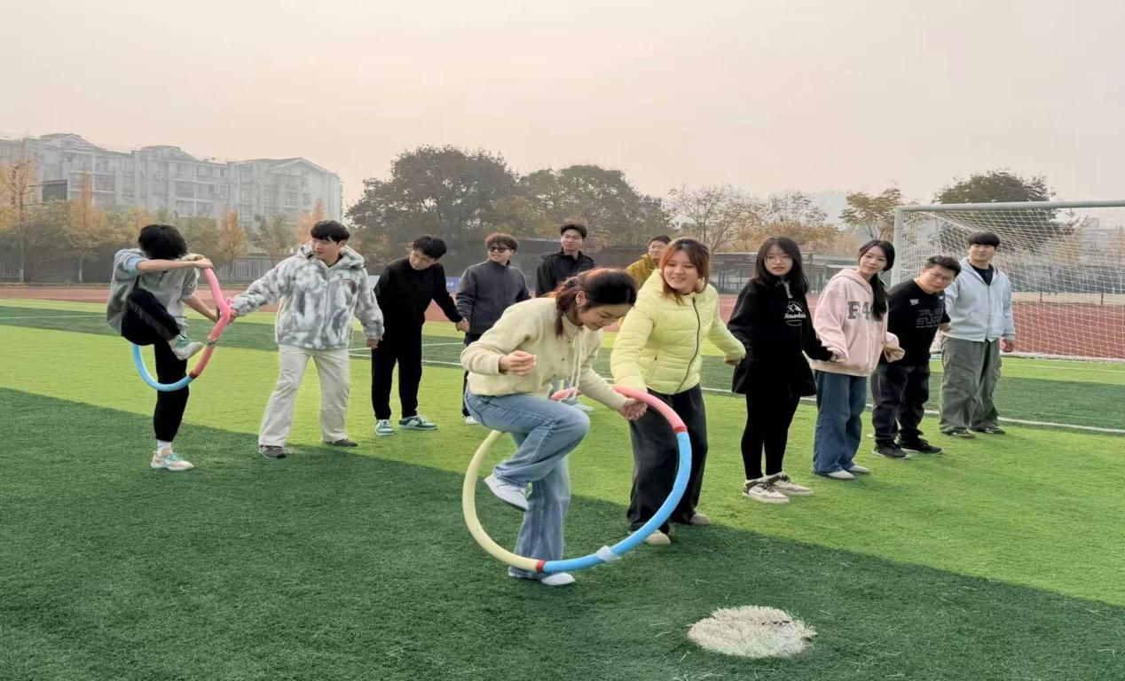 活动伊始,“数字抱团”游戏迅速点燃现场氛围。伴随着欢快的音乐,选手们在绿茵场上灵活移动,场充满了紧张又欢乐的气息。这一环节不仅考验了大家的反应速度,更让陌生的成员快速熟悉,为后续的团队协作奠定了良好基础。活动还设置了围圈运球、传递呼啦圈、成语闯关等趣味项目,师生并肩参与,充分展现了团委学生会的团队智慧与力量,为冬日校园增添一抹亮色。