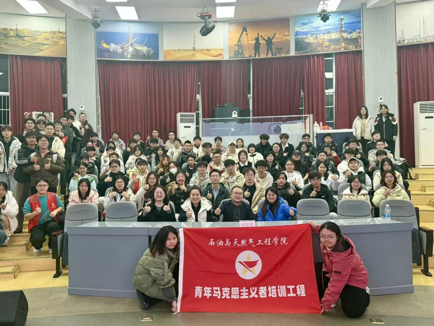 最后,杨智军通过名人寄语和励志案例,鼓励学子坚定信念、深耕自我,在成长中践行责任与担当。参会人员合影之后,讲座在全体共青团员满怀赤诚的共产主义信念滋养中圆满结束。
