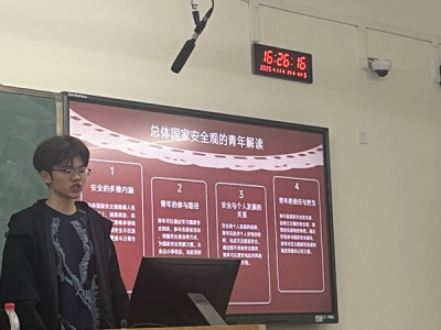 活动伊始,团支部书记带领全体团员重温《光荣啊,中国共青团》团歌,激昂的旋律点燃了现场氛围,也让大家深刻感受到共青团员肩负的时代使命。随后,通过PPT展示系统学习总体国家安全观的核心内涵,从2014年习近平总书记提出这一重要理念出发,详细解读其涵盖政治、国土、军事、经济等16个领域的丰富内容,阐明安全与发展相辅相成的辩证关系,让团员们明白国家安全不仅关乎国家复兴大局,更与个人成长发展紧密相连。结合全球风险图谱中的中国方位,大家围绕俄乌冲突引发的能源危机、芯片封锁对高科技产业的影响等热点话题展开讨论,深刻认识到外部风险对国家发展和青年就业的潜在影响,进一步增强了风险防范意识。