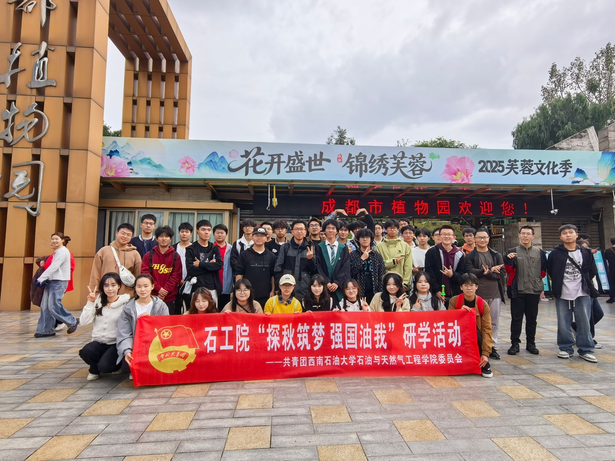 11月1日,西南石油大学石油与天然气工程学院2025级1、2、10、11班在学院团委统一组织下,开展了以“探秋筑梦 强国油我”为主题的秋游研学活动。此次活动分别走进成都植物园、音乐百花谷和广汉三星堆博物馆,在亲近自然、感悟历史中厚植家国情怀与专业责任意识。