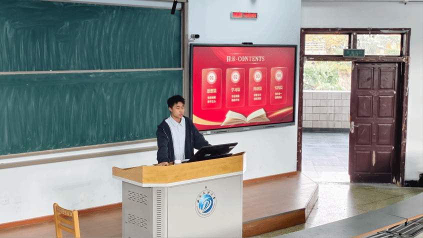 分享会中,陈浩宇学长以“锚定方向,找寻自己的道路”为主题,围绕方向规划、课程学习、科研竞赛、社会实践四大核心维度展开分享。在方向规划方面,他建议尽早确立个人目标,以目标为引领系统推进学业与成长;在课程学习上,强调扎实掌握专业基础,努力提升学业成绩;在科研竞赛方面,鼓励同学们积极参与、在实践中锻炼学术能力;在社会实践方面,倡导同学们主动投身“三下乡”、学生工作等活动,在多元体验中拓展综合素养、明晰自我定位。