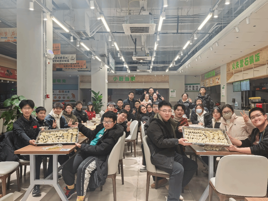 同学们一边包饺子,一边与辅导员们畅聊心声,原本不太熟悉的同窗在揉面、递皮、分享馅料的互动中渐渐熟络,来自五湖四海的学子在交流中感受着不同地域的文化魅力。大家分工协作,擀皮的同学动作麻利,包馅的同学创意十足,传递工具、分享经验的身影穿梭其间,俨然一幅温馨的 “大家庭聚餐” 画卷。