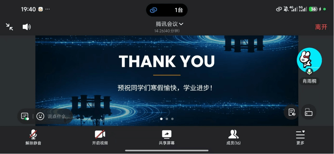 为精准把握班级学习状态,明确后续努力方向,2026年1月26日,西南石油大学2023级石油工程1班通过线上平台召开春季学期学情分析会。辅导员肖雨桐、汇报人梁崇震及全班43名同学齐聚云端,共同回顾总结本学期学业情况,剖析现存问题,明确改进方向。