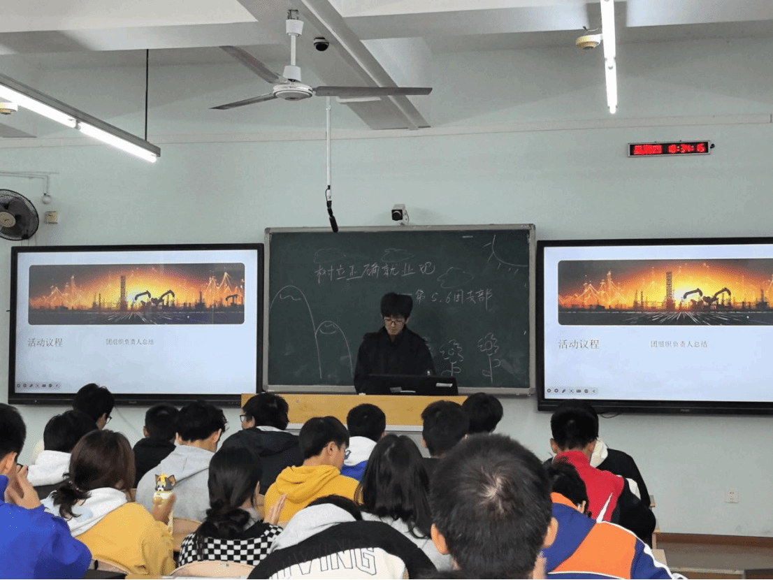 互动分享环节由杨竣杰主持,他围绕“个人与石油行业的发展的关系”“石油行业转型期的能力准备”等核心问题与同学们展开交流,现场学子积极回应,结合自身认知分享观点,彼此交流启发,氛围热烈融洽。最后,两位团支书发出行动倡议,呼吁同学们以扎实的专业知识、务实的就业心态、进取的奋斗姿态,主动适应行业智能化发展需求,在石油行业高质量发展的浪潮中实现人生价值。